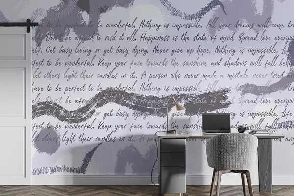 Peintures murales Design avec citations inspirantes, abstraction, couleurs violettes Nr. w03909v2