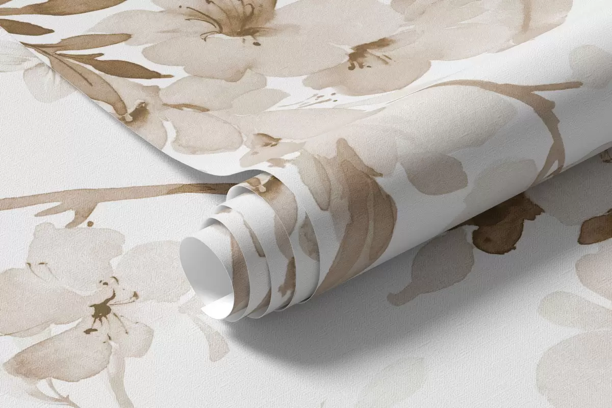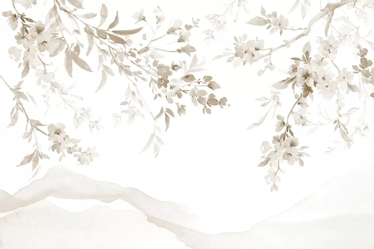 Peintures murales Branches fleuries, imitation d'aquarelle, tons beiges Nr. w03935v2