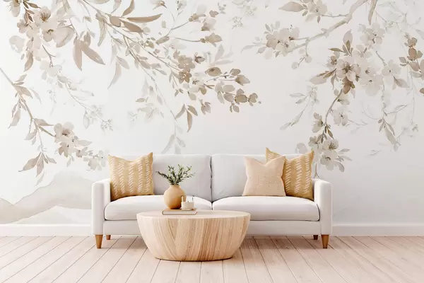peintures murales Branches fleuries, imitation d'aquarelle, tons beiges w03935v2