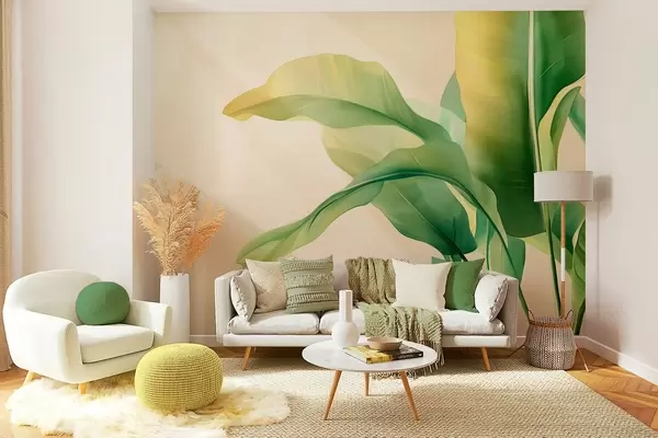 Peintures murales grandes feuilles tropicales vertes sur le côté Nr. w03959