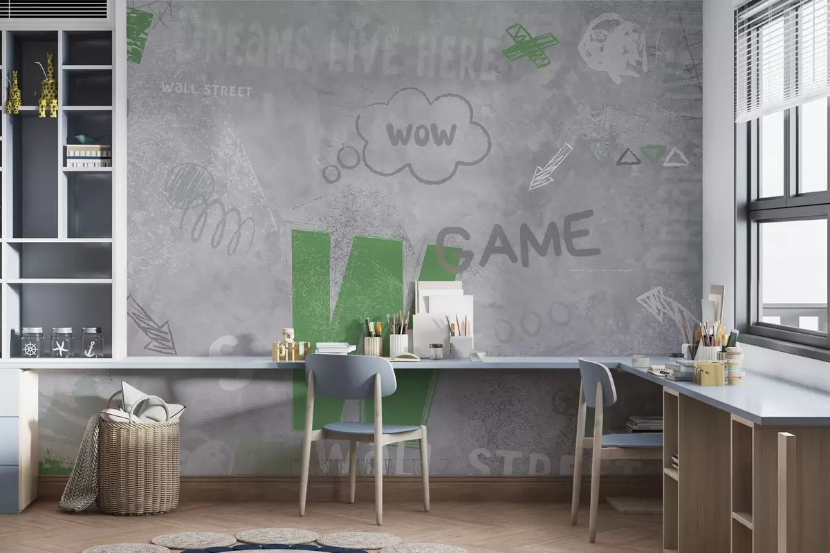 Peintures murales Dessin de rue avec lettres de couleur verte sur fond de mur en béton Nr. w04056v2