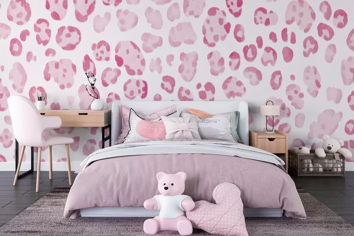 Peintures murales Imprimé léopard, texture laine, couleur rose Nr. w04112v2