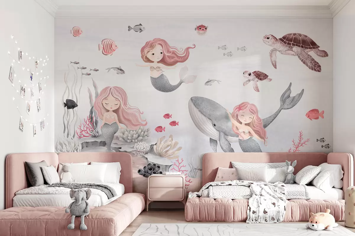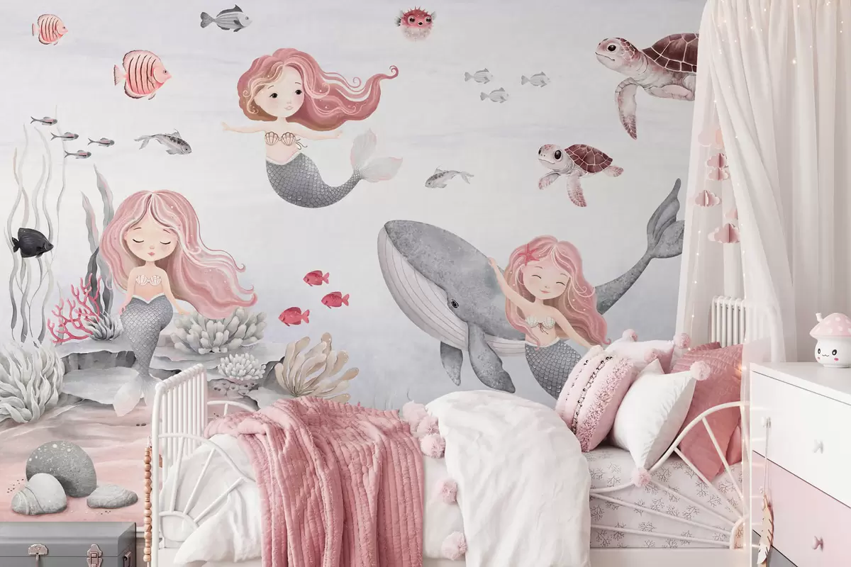 Peintures murales Monde sous-marin avec sirènes et poissons Nr. w04166v1