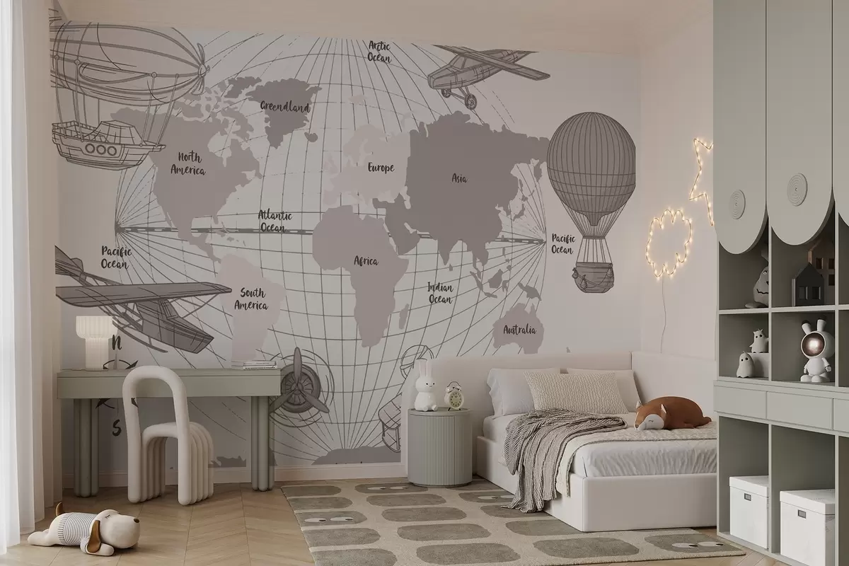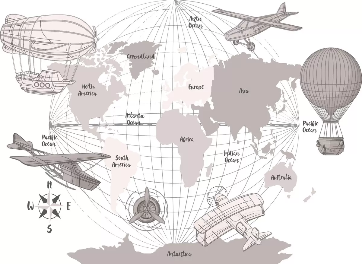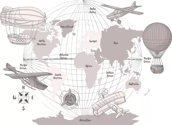 Peintures murales Carte du monde avec des avions Nr. w04177
