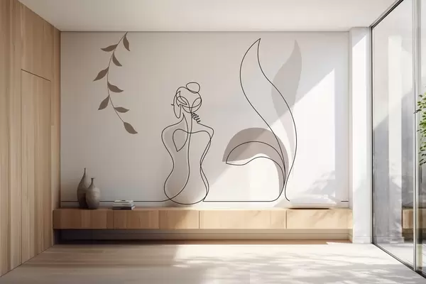 Peintures murales silhouette linéaire d'une femme et de feuilles Nr. w04303