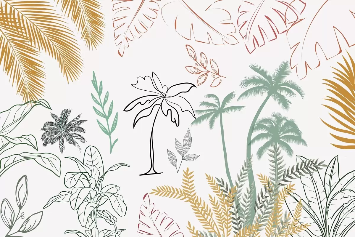 Peintures murales Feuilles tropicales en style graphique Nr. w04332