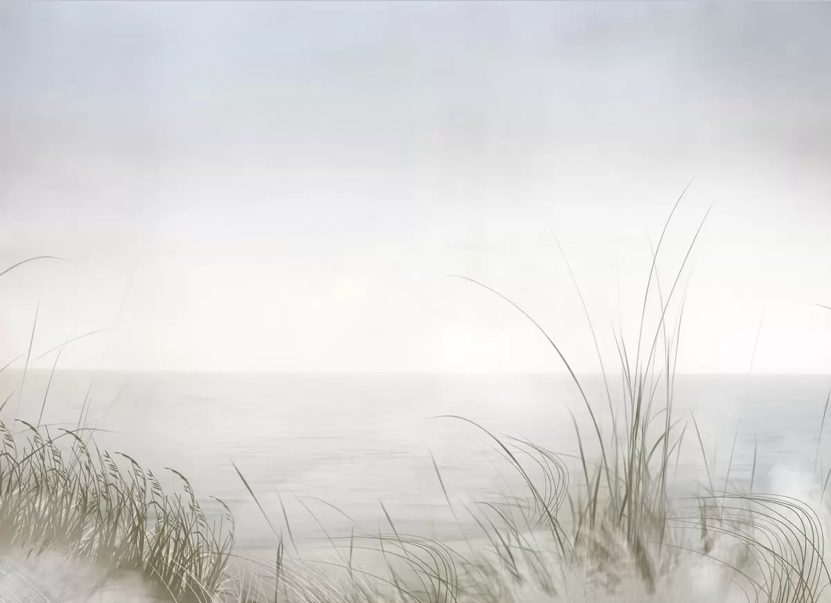 Peintures murales Rivage brumeux avec des herbes délicates au premier plan Nr. w04339
