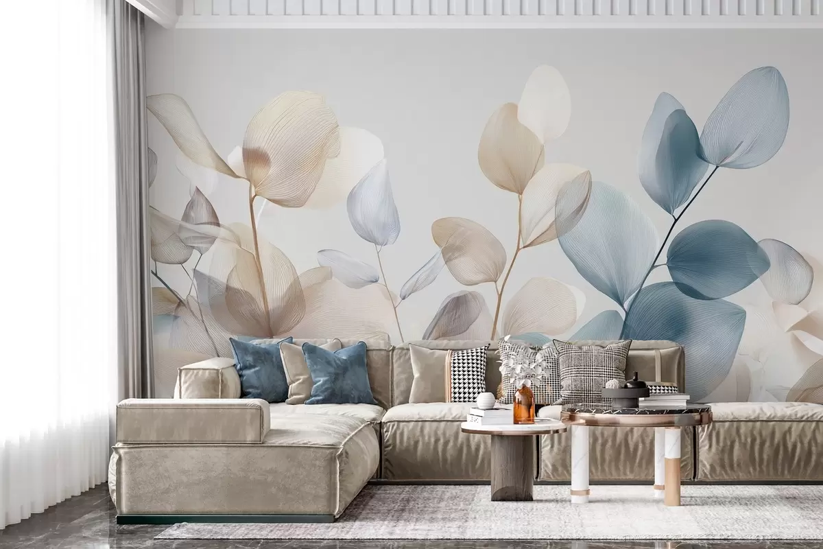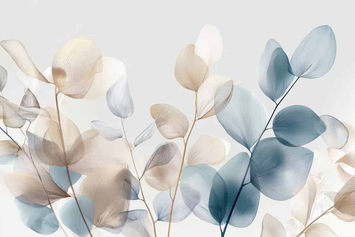 Peintures murales feuilles d'eucalyptus élégantes avec nervures Nr. w04503