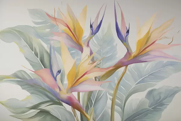 Peintures murales Fleurs et feuilles de Strelitzia Nr. w04527