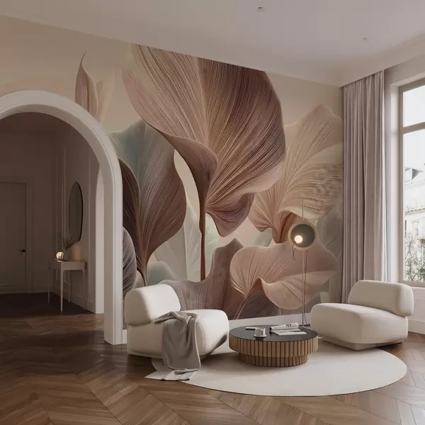 Peintures murales Feuilles élégantes dans des tons beiges chauds Nr. w04549v1