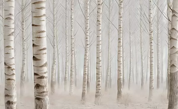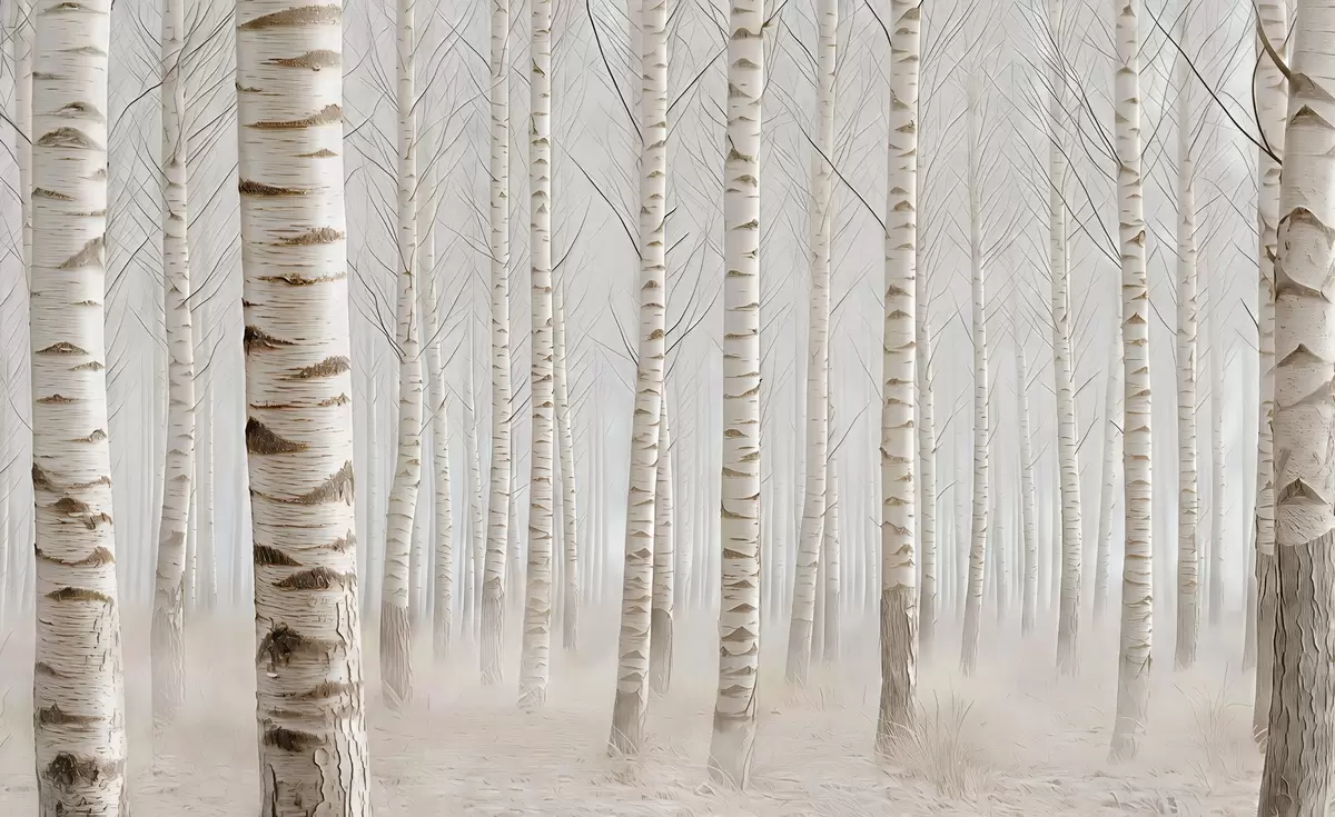 Peintures murales Forêt de bouleaux dans le brouillard, minimalisme lumineux Nr. w04574