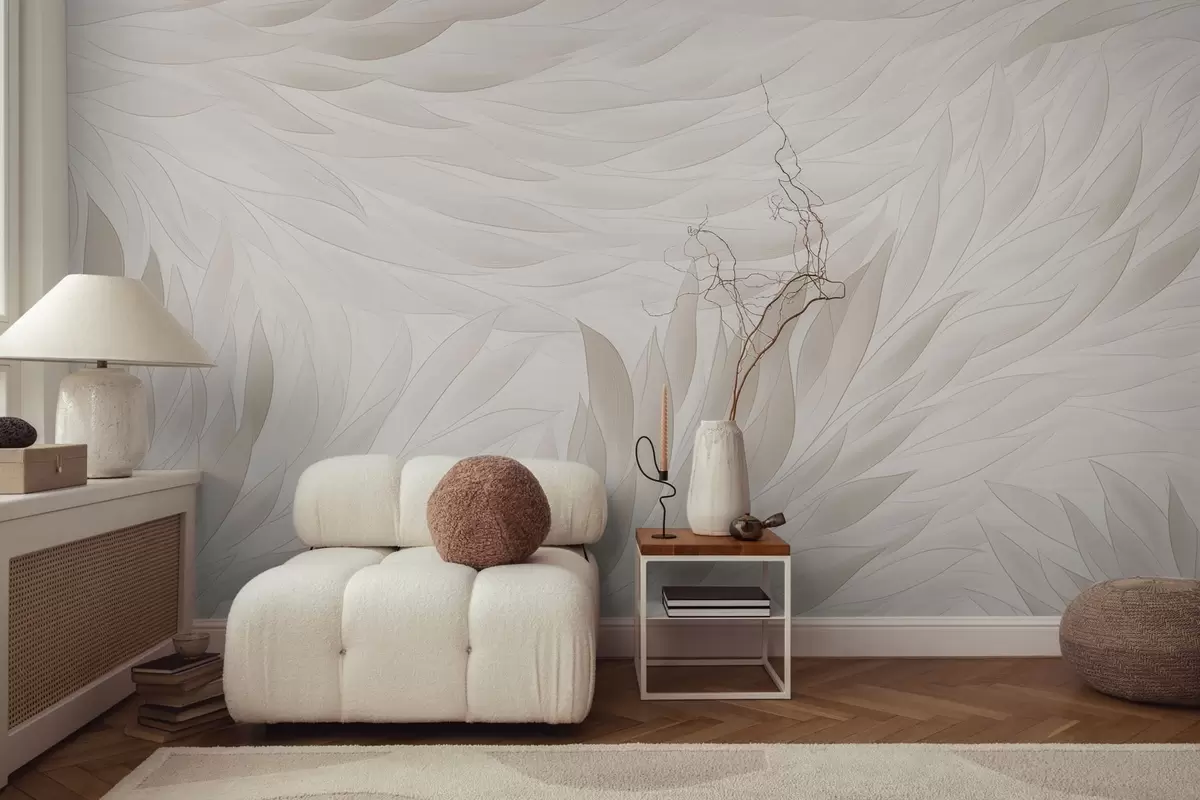 Peintures murales Feuilles ondulées dans des tons crème doux Nr. w04610