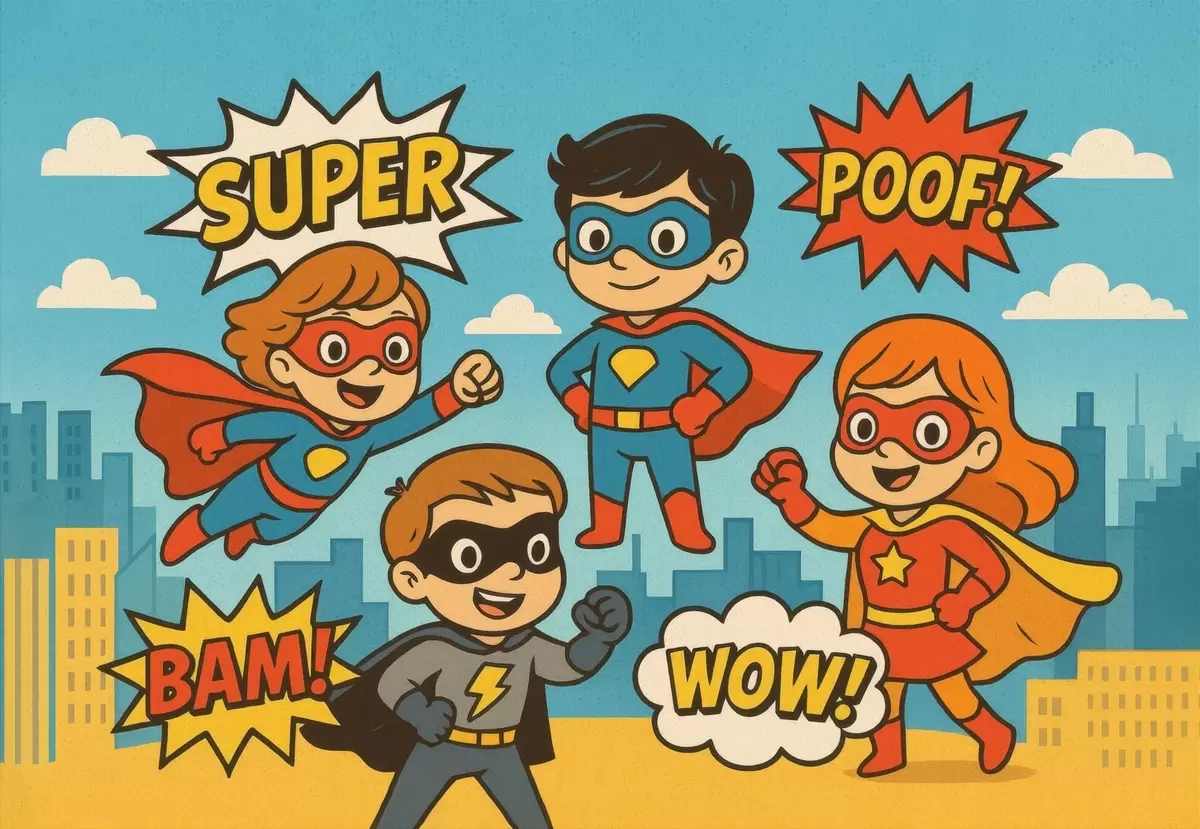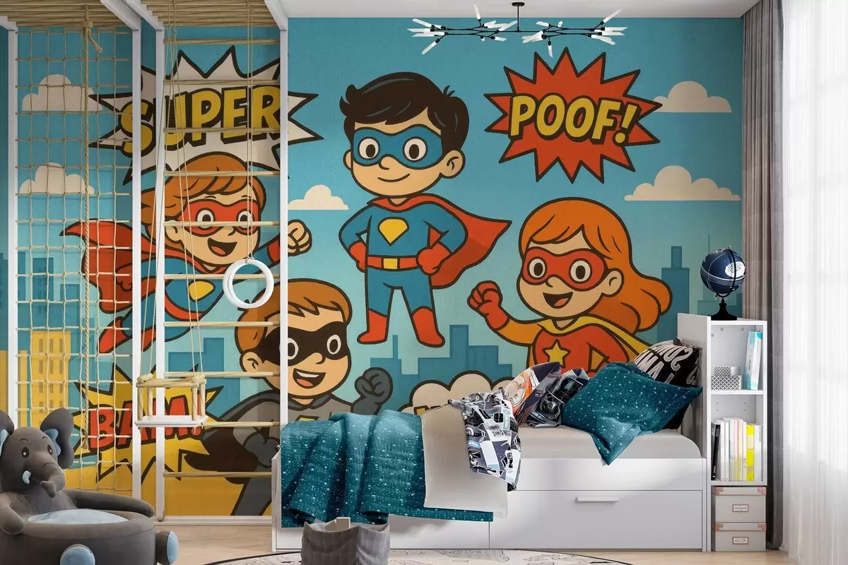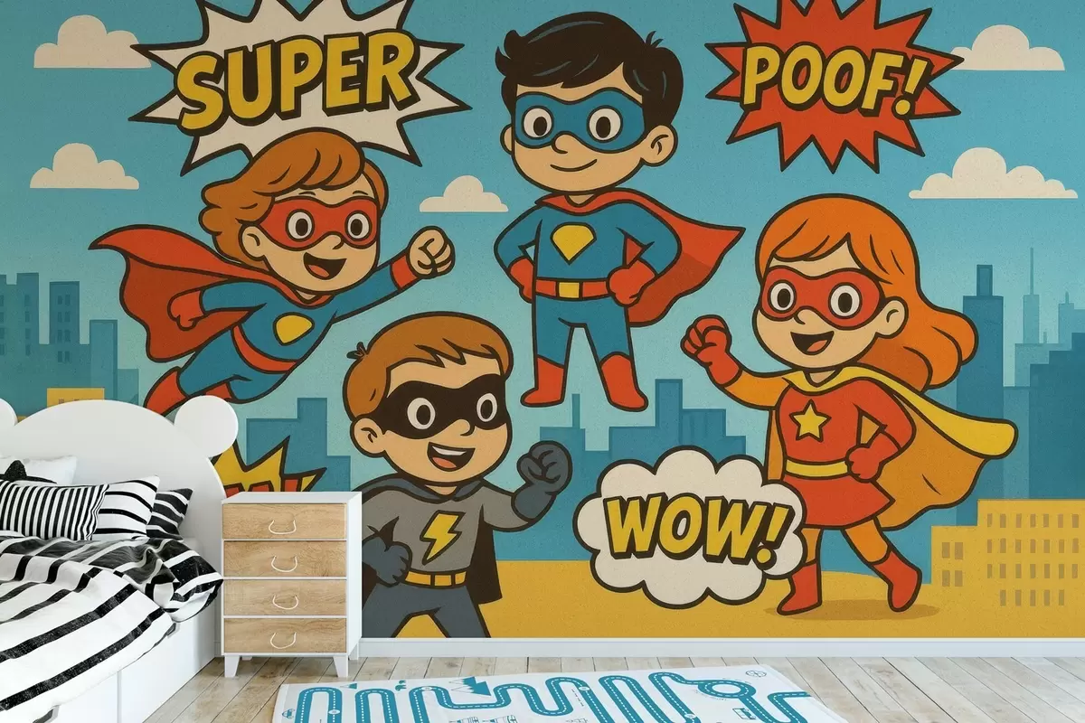 Peintures murales super-héros drôles dans le style bande dessinée Nr. w04625