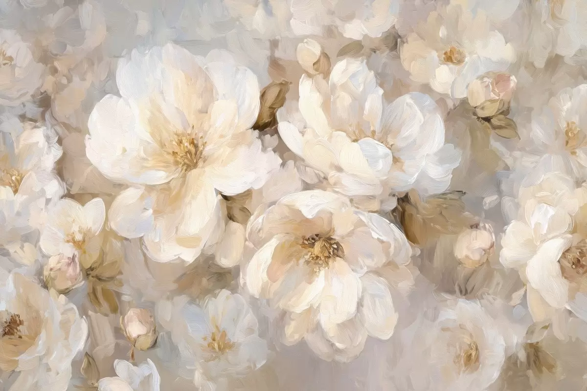 Peintures murales grandes fleurs dans les tons blancs et beiges dans le style de la peinture à l'huile Nr. w04633