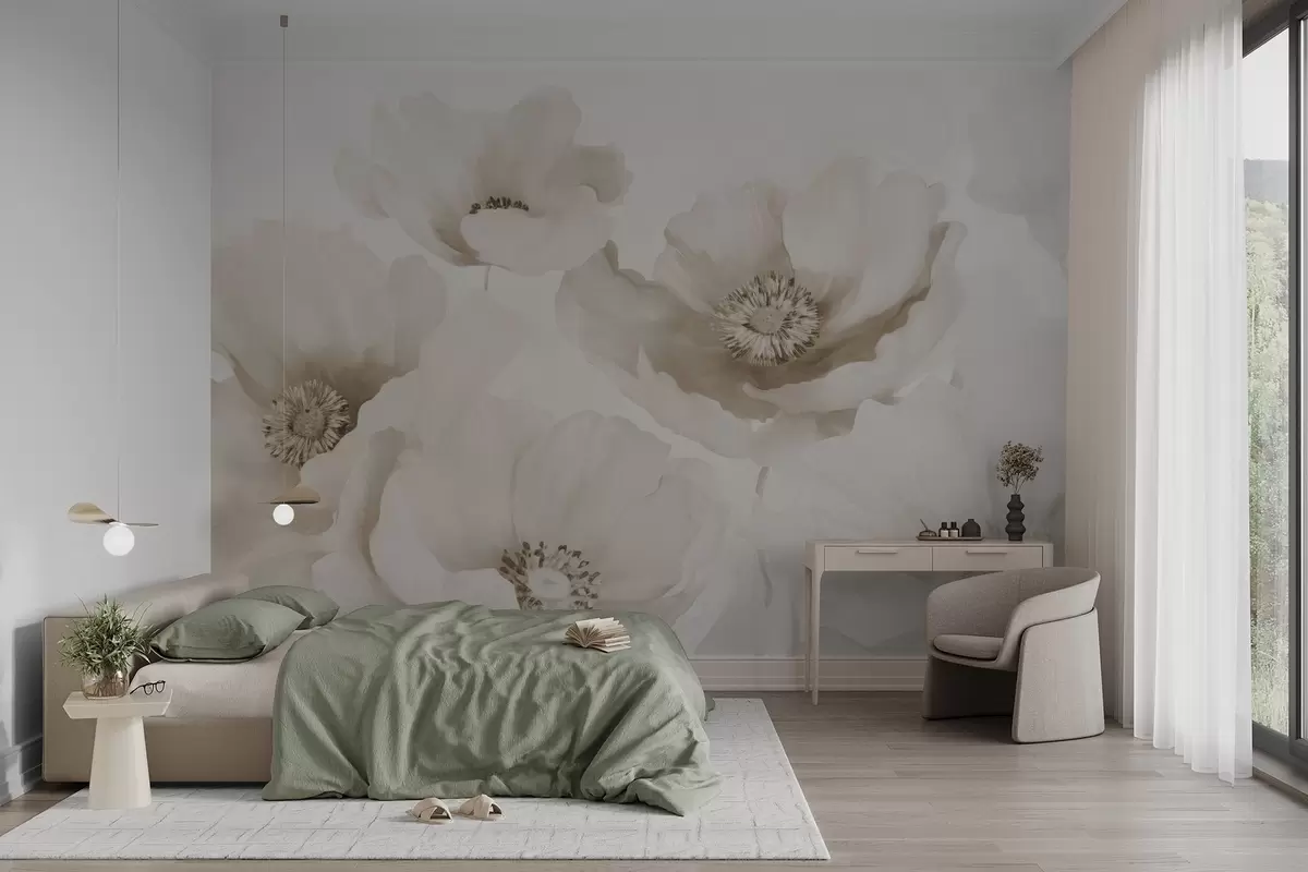 Peintures murales Coquelicots nuances de beige Nr. w04656v1