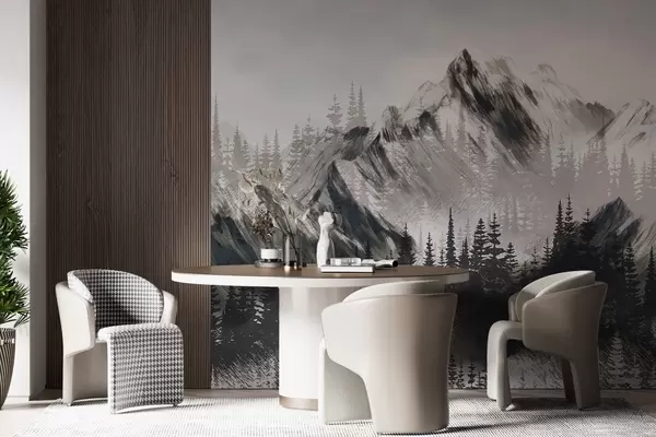 Peintures murales Montagnes et forêt de conifères Nr. w04666