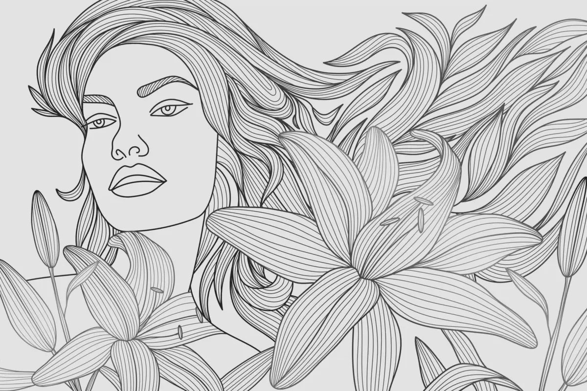 Peintures murales Portrait d'une jeune fille parmi les lys Nr. w04689