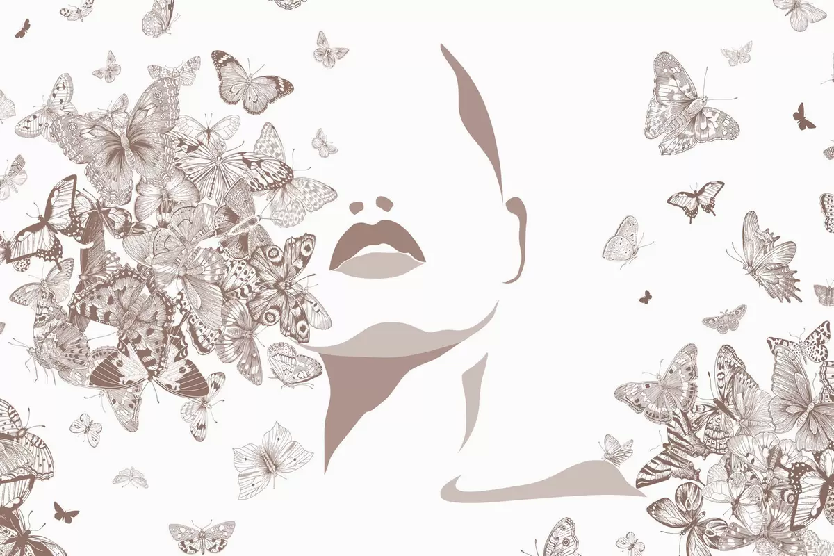 Peintures murales Silhouette d'un visage parmi les papillons Nr. w04778