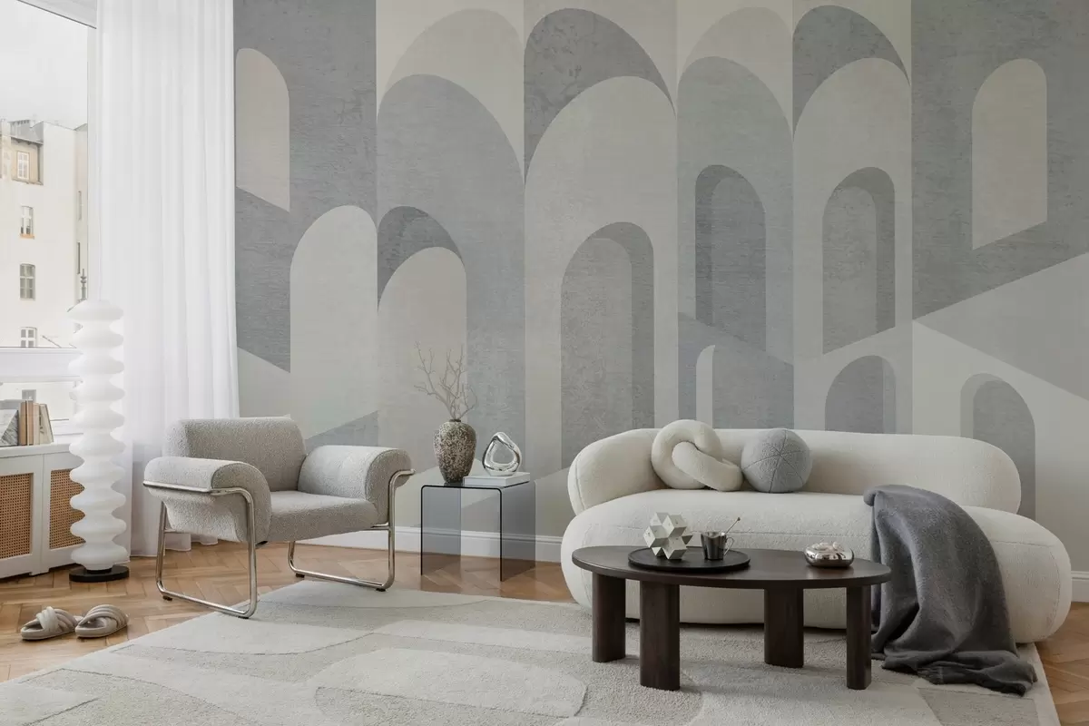 Peintures murales métamorphoses urbaines de l'arche dans des tons gris et beige froid Nr. w04812v1