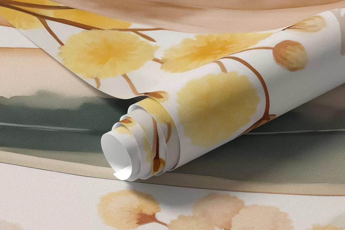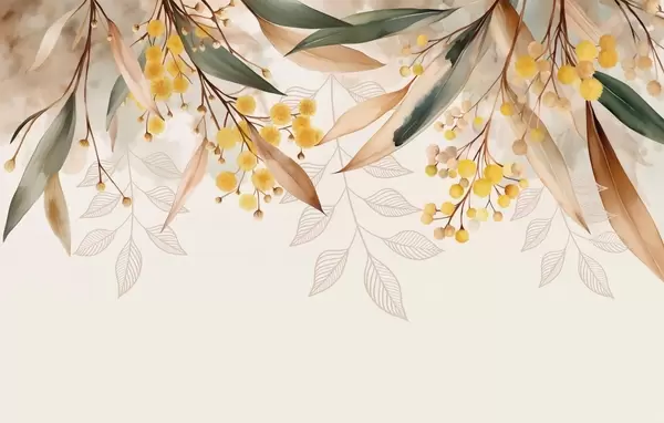 Peintures murales fleurs et feuilles de mimosa tombant du ciel dans un style aquarelle Nr. w04880