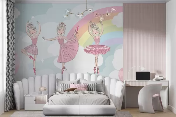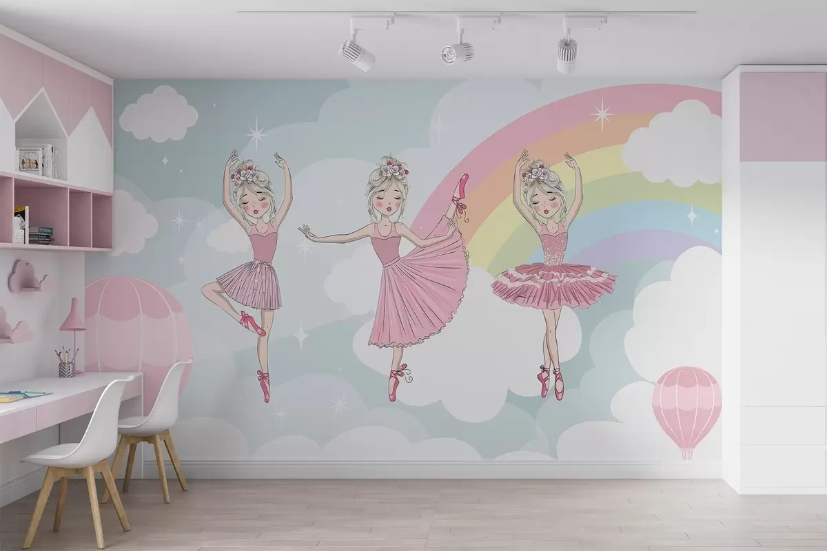 Peintures murales Princesses sur fond de ciel et d'arc-en-ciel Nr. w04907