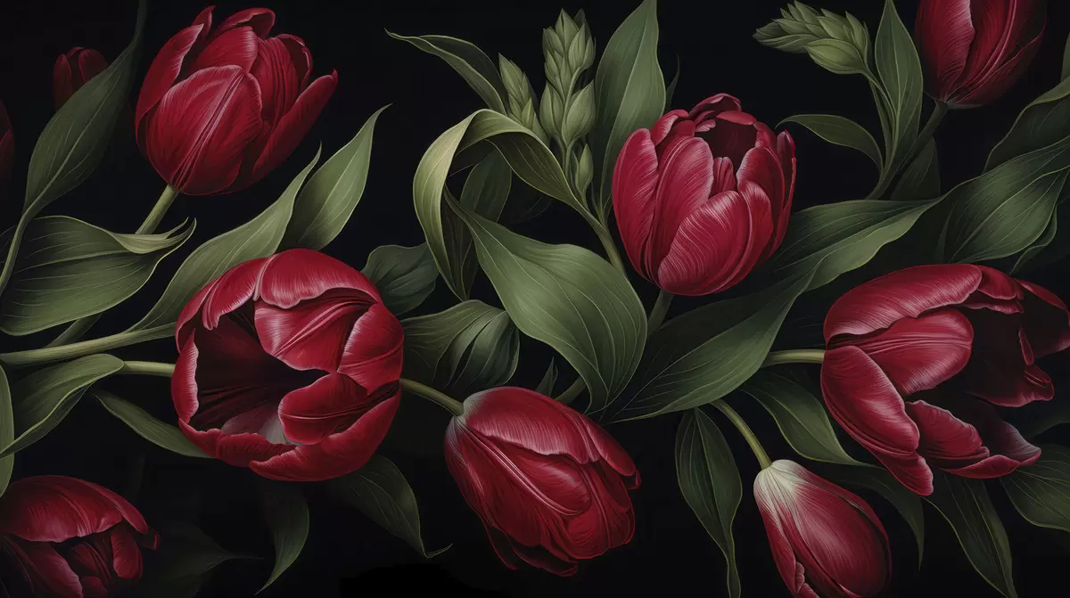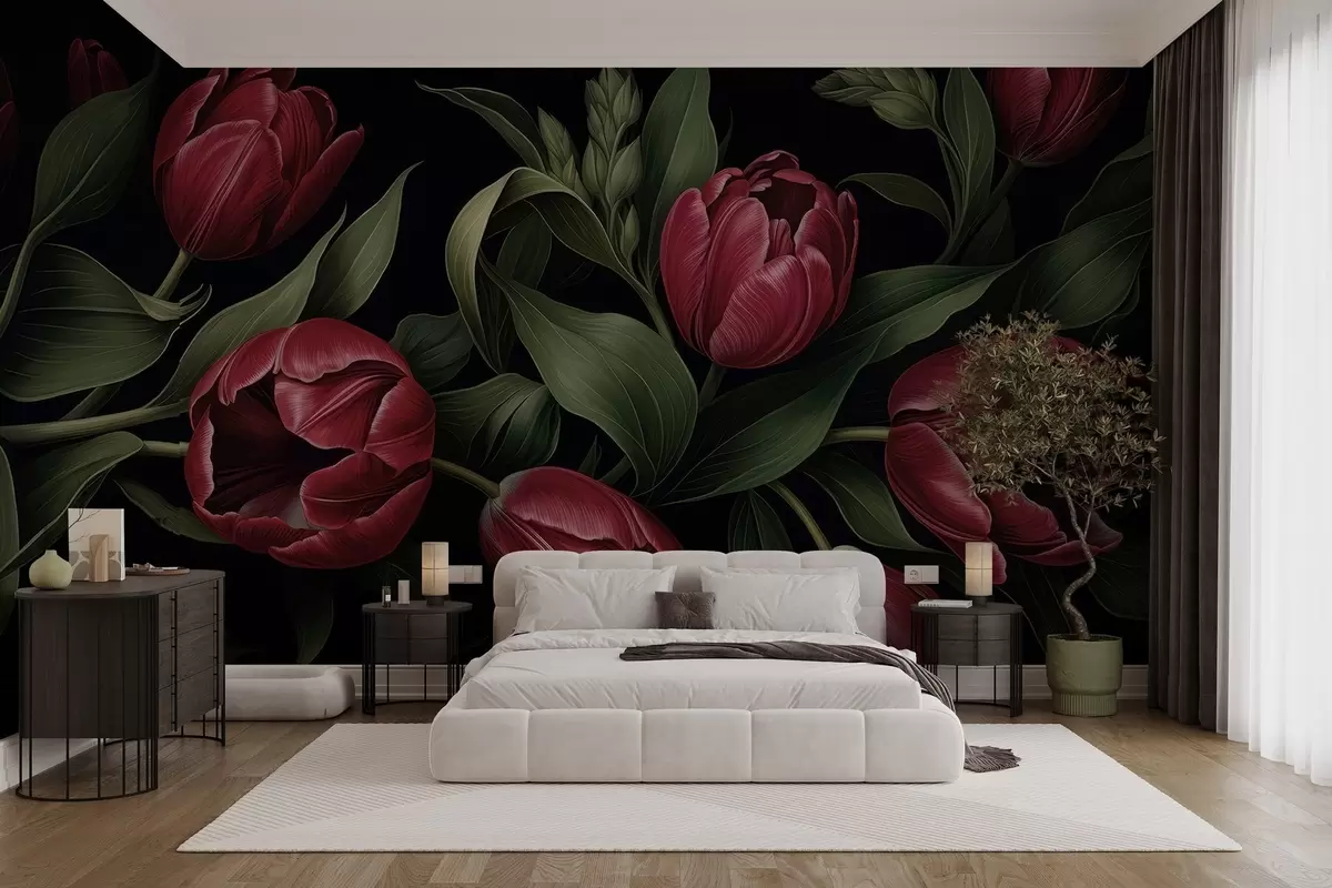 Peintures murales Les tulipes rouges de la nuit Nr. w05047