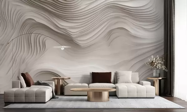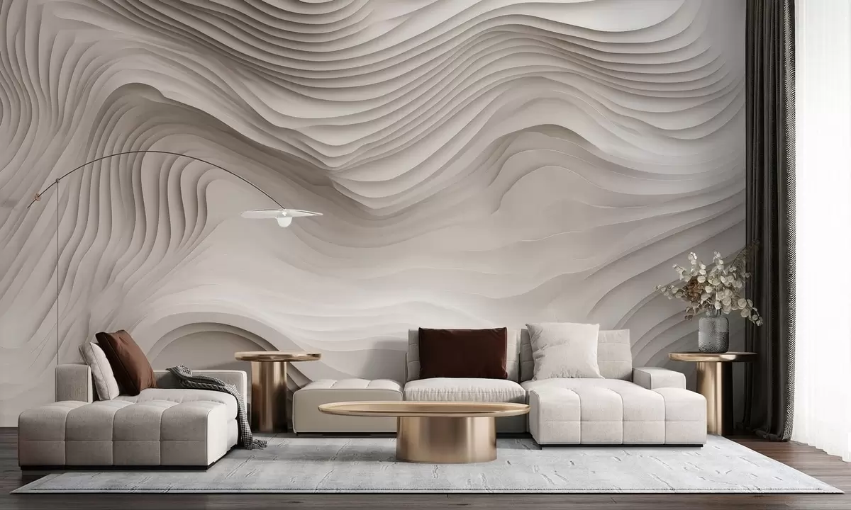 Peintures murales imitation de reliefs volumineux en gradins dans les tons beiges Nr. w05061v1