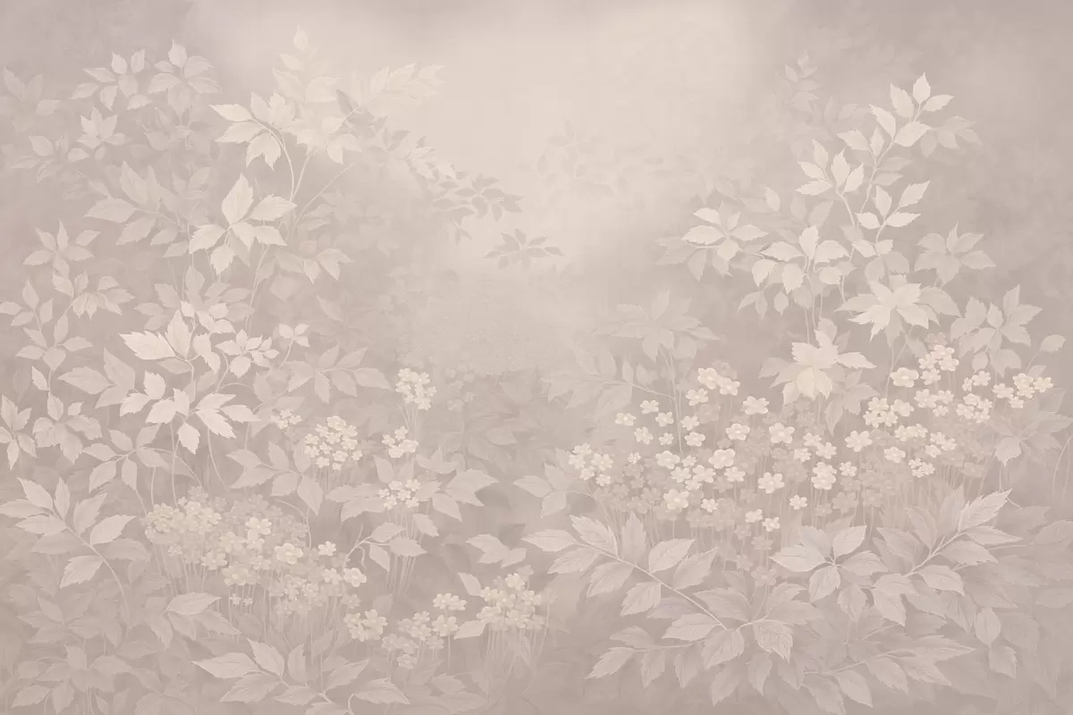 Peintures murales Ornement botanique léger avec des feuilles et des petites fleurs Nr. w05115