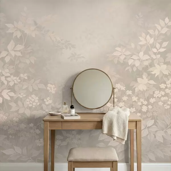 Peintures murales Motif botanique délicat avec des feuilles et des fleurs dans la brume Nr. w05115v1