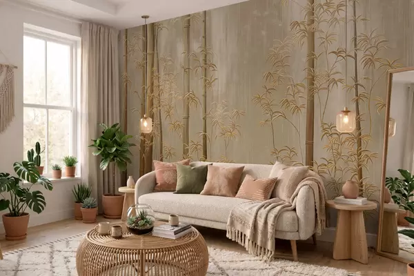 Le papier peint est divisé en bandes pratiques d'une largeur maximale de 50 cm