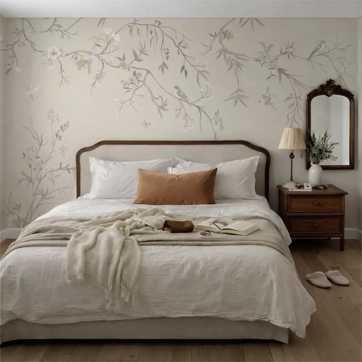 Peintures murales Fleurs légères et oiseaux sur fond pastel Nr. w05127v2