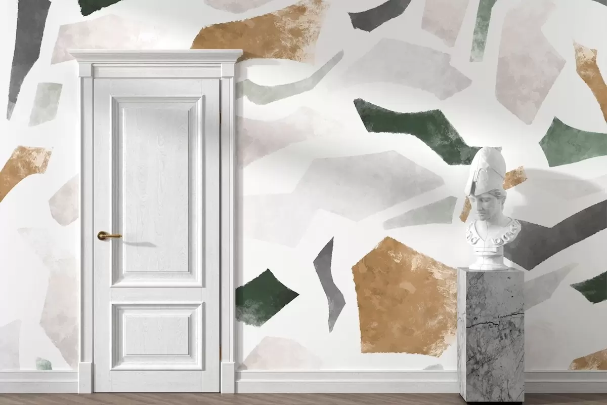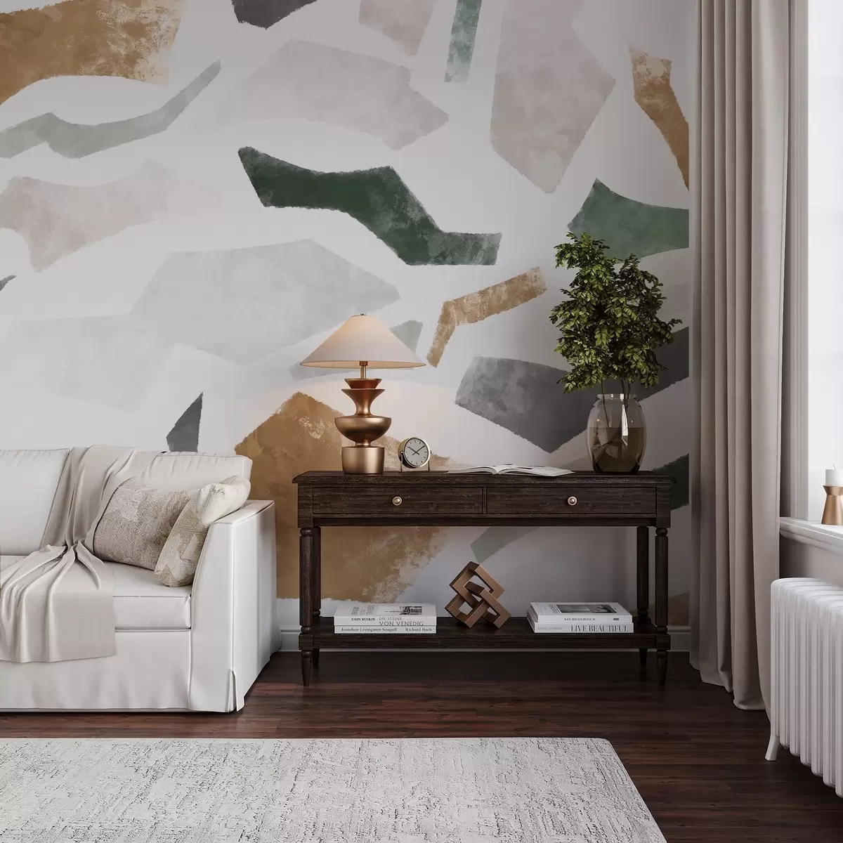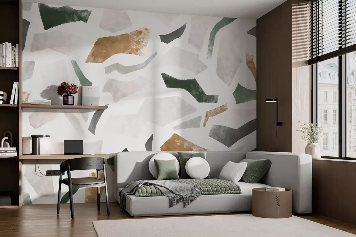 Peintures murales Fragments texturés abstraits dans des tons verts et beiges Nr. w05146