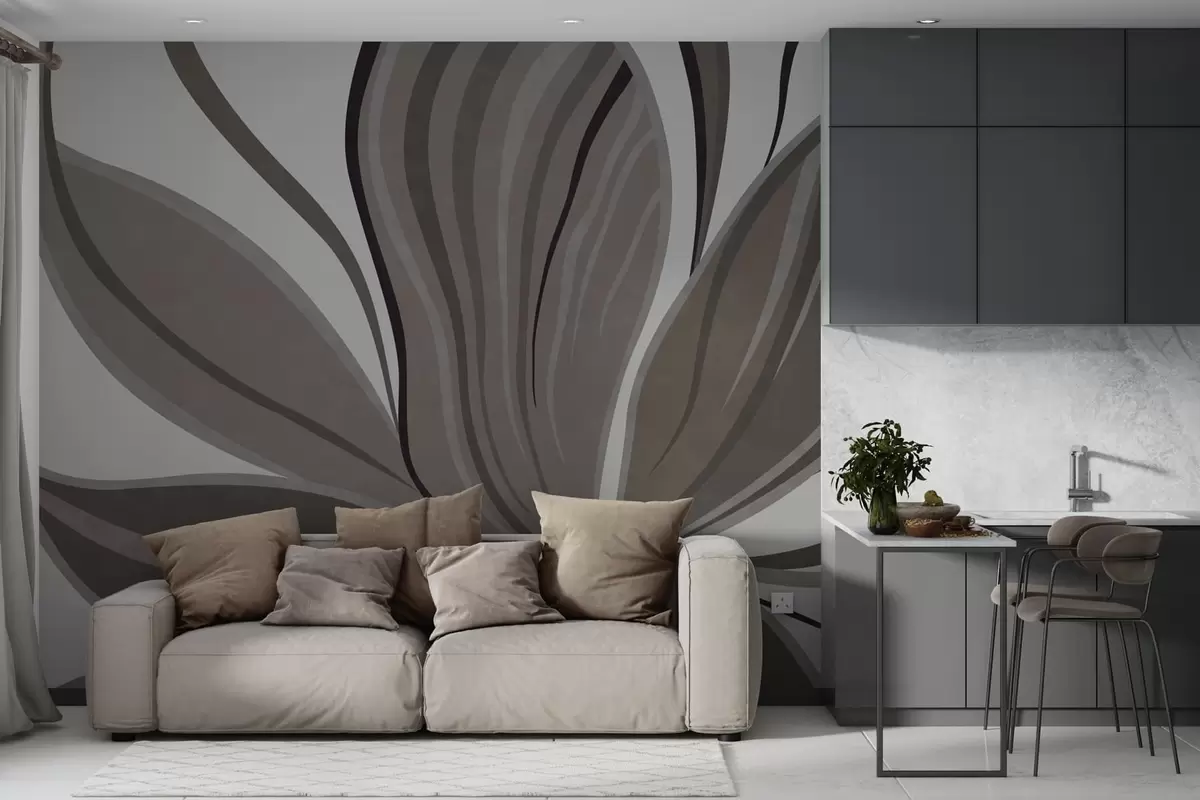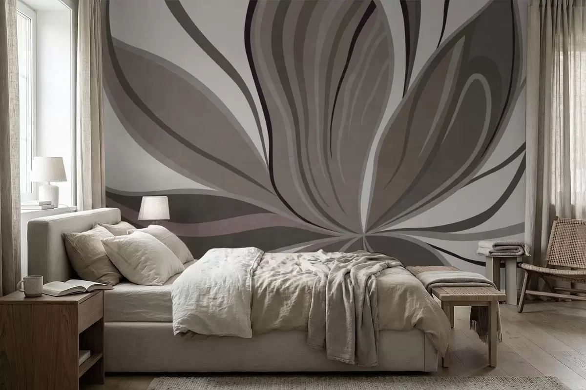 Peintures murales Fleur abstraite aux lignes douces, dans des tons gris-beige Nr. w05147v1