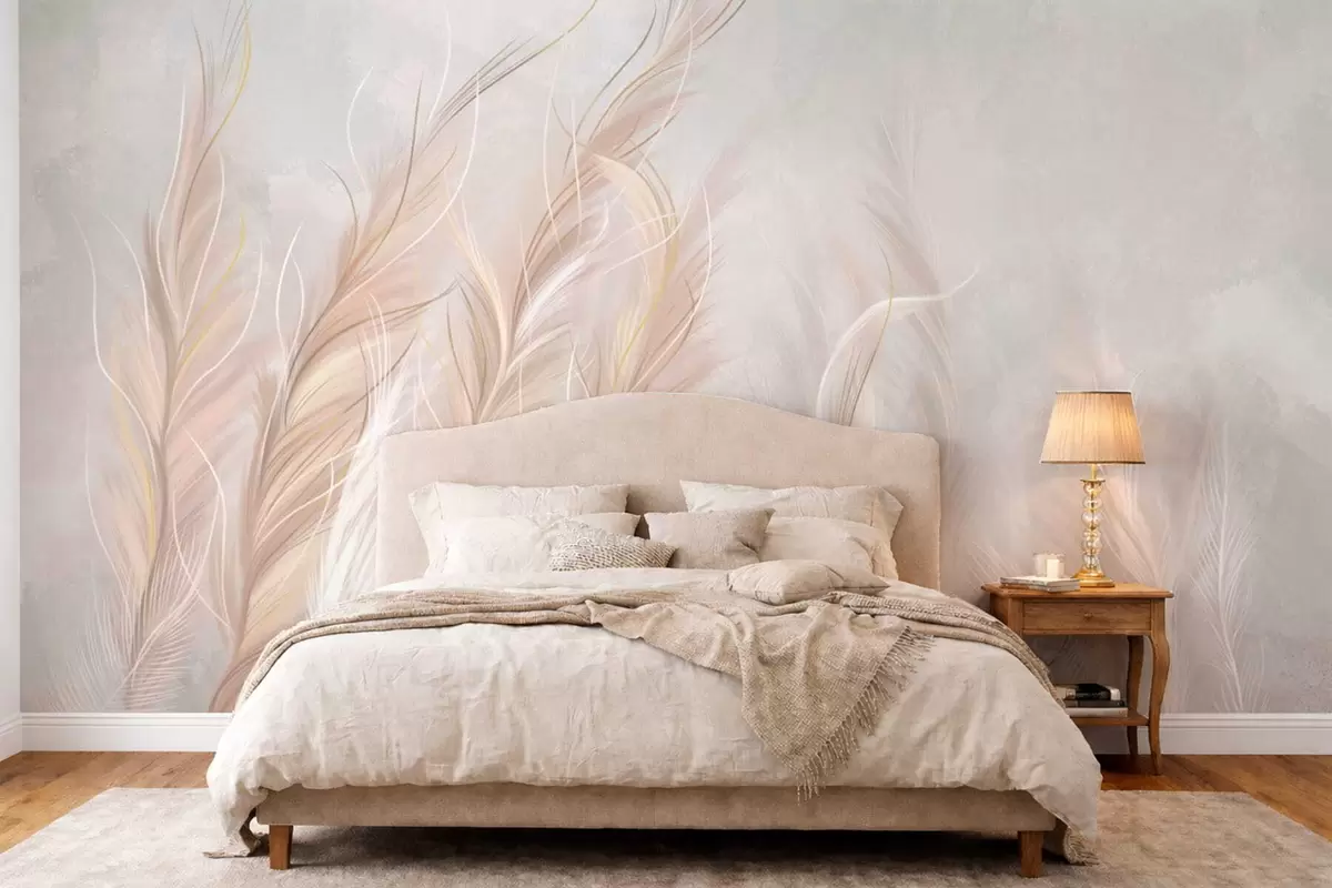 Peintures murales Plumes douces et abstraites dans des tons neutres clairs Nr. w05153