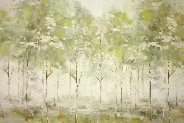 Peintures murales Forêt stylisée avec des arbres élancés dans des tons chauds Nr. w05221