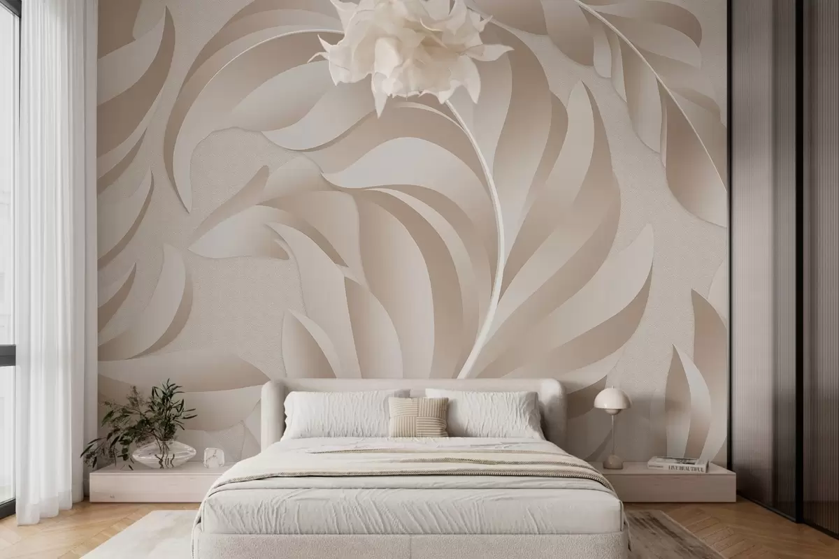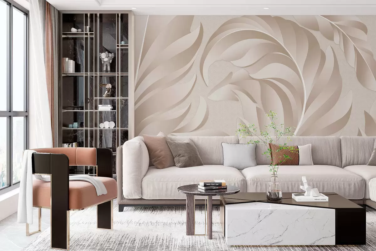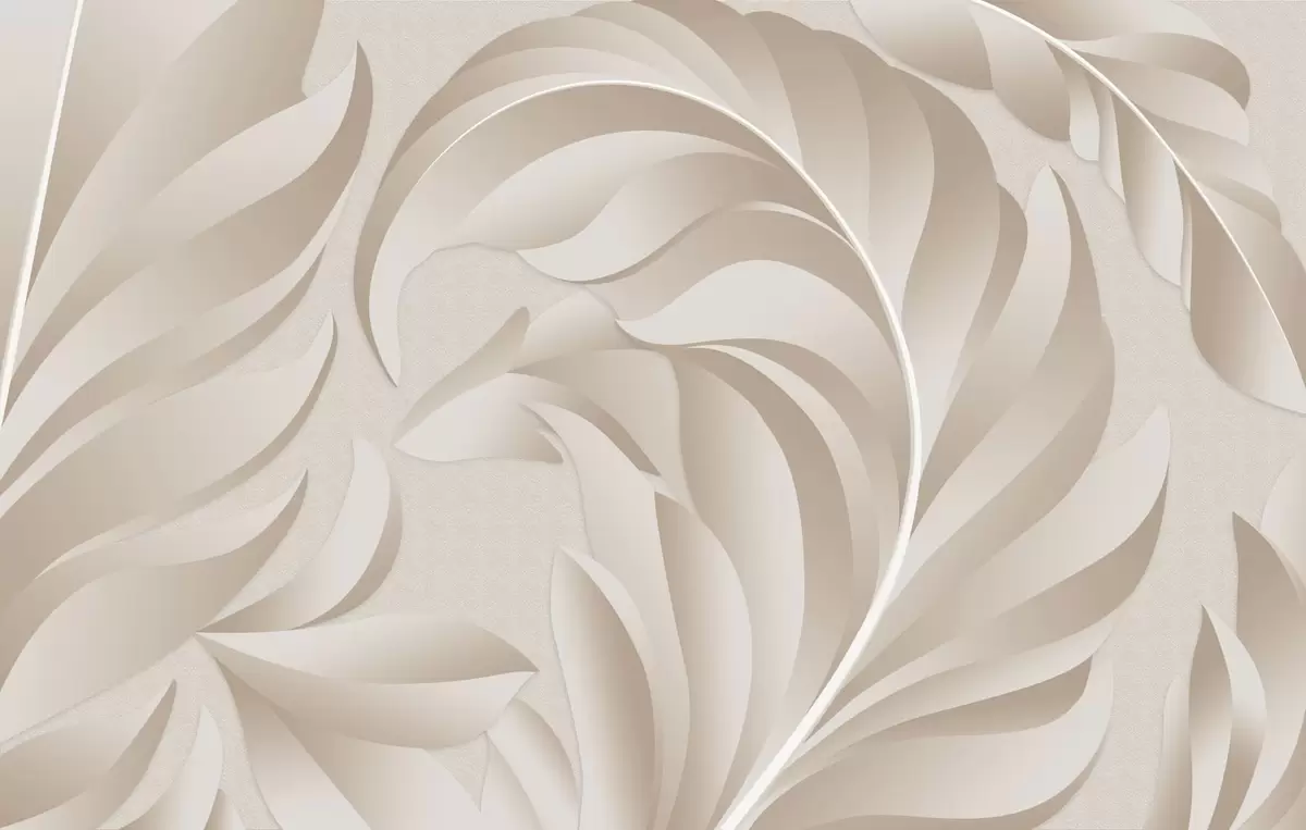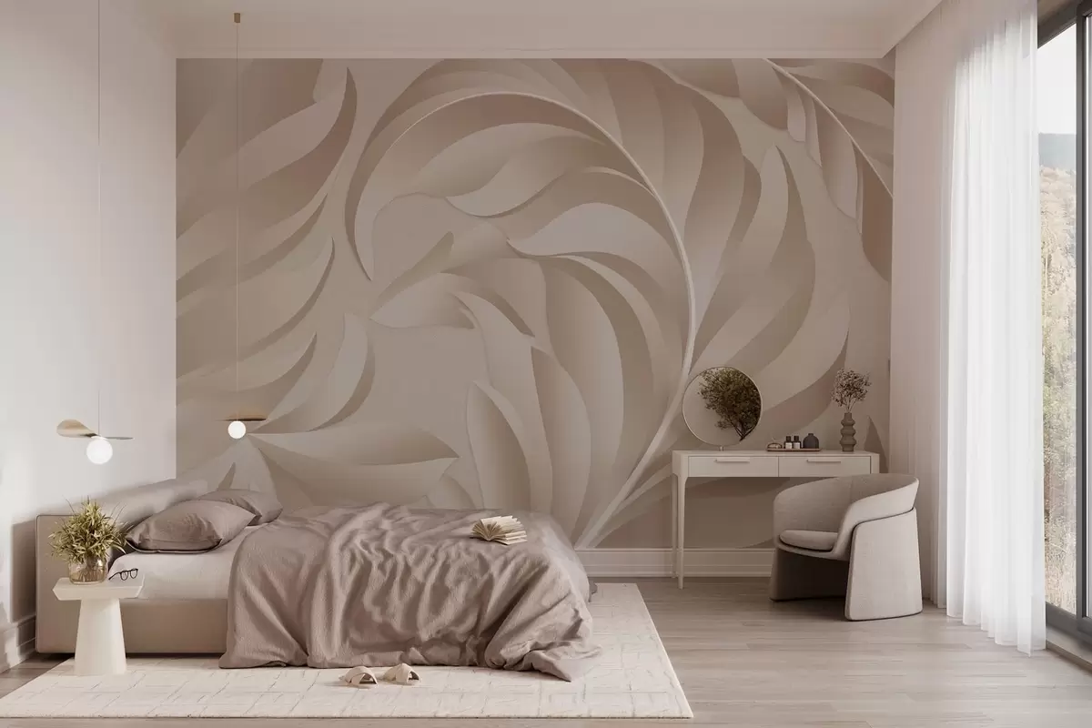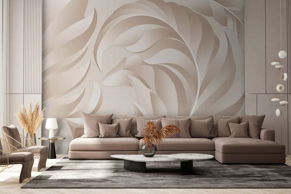 Peintures murales grandes plumes texturées dans des tons beige et poudre Nr. w05231