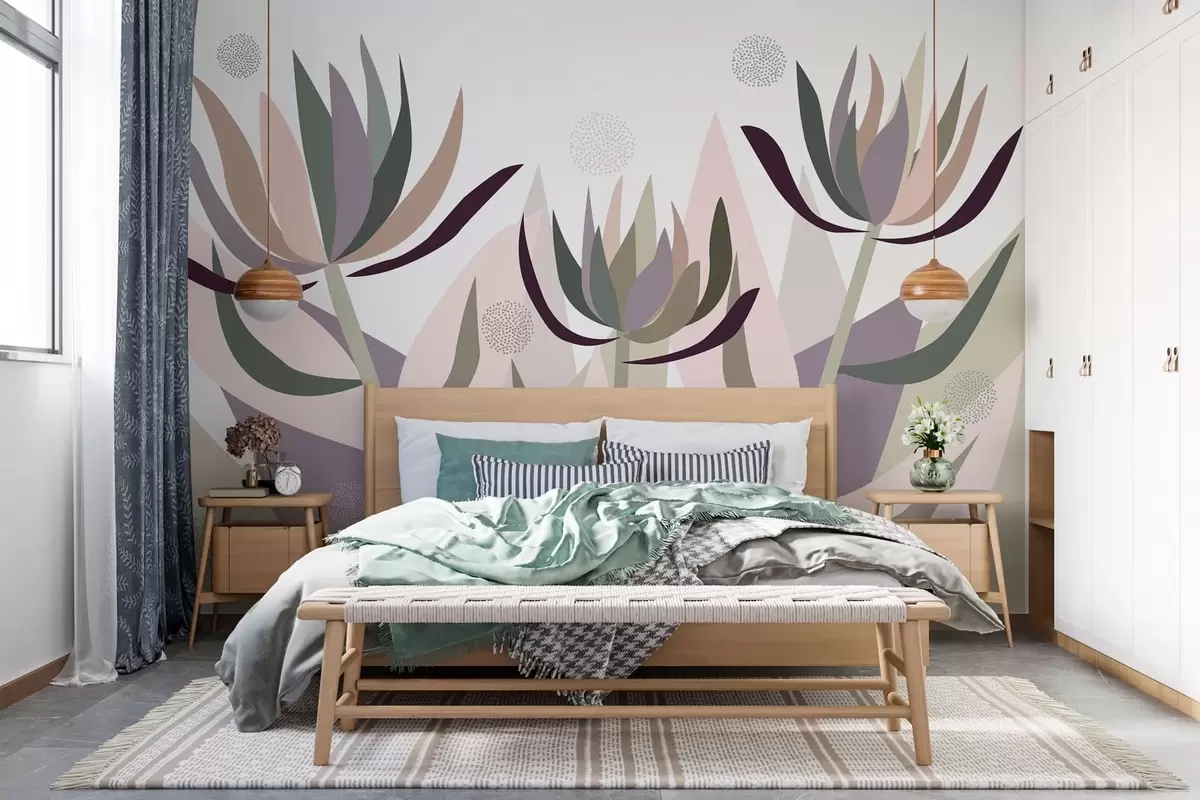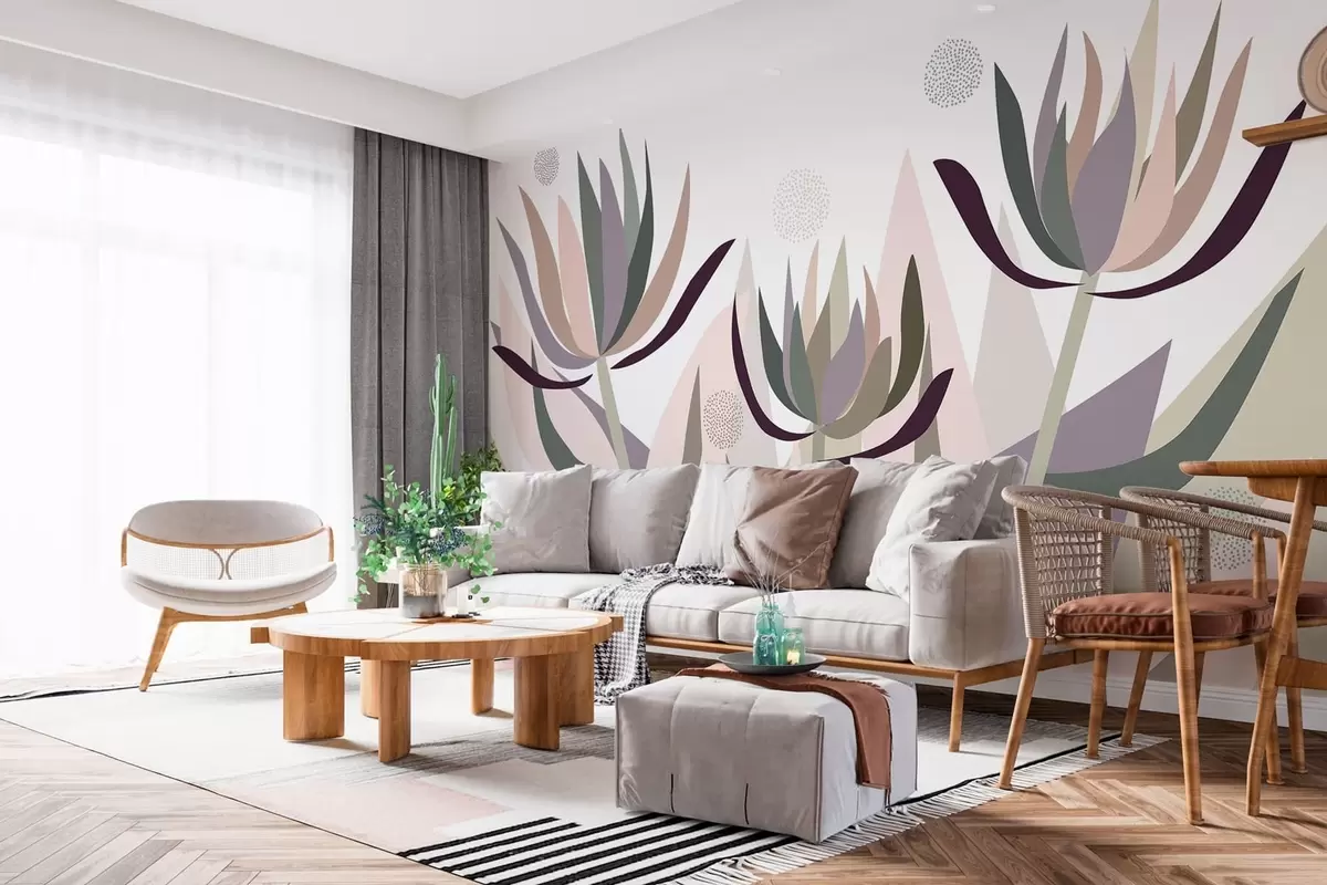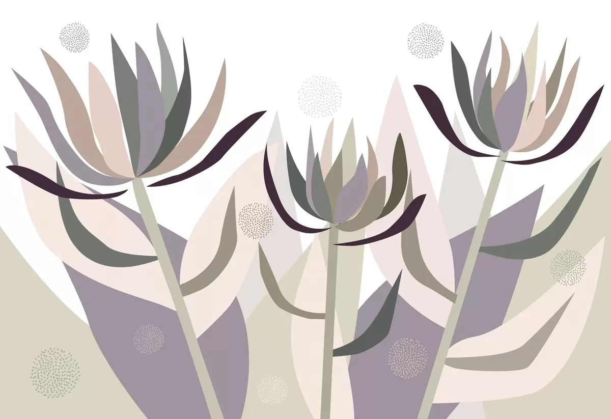 Peintures murales des fleurs de protéa stylisées dans un style primitif Nr. w05236