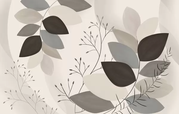 Peintures murales feuilles et herbes dans des tons de beige, de gris et de marron Nr. w05237