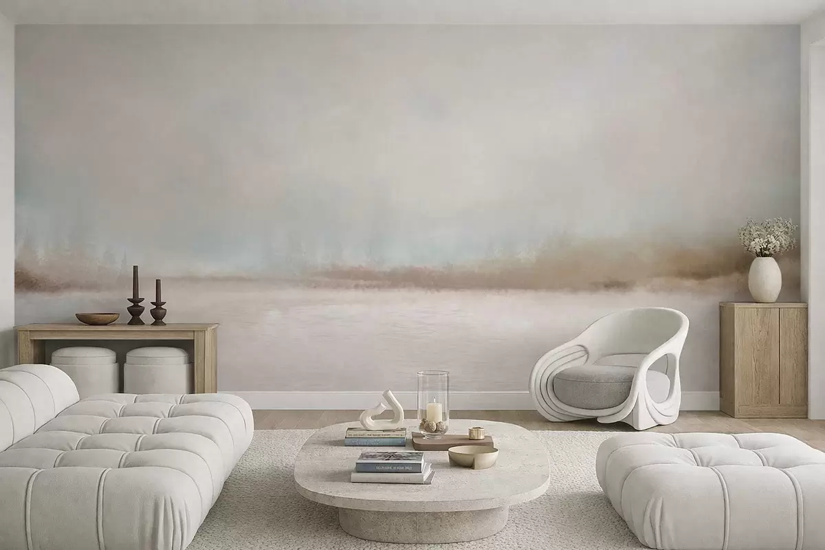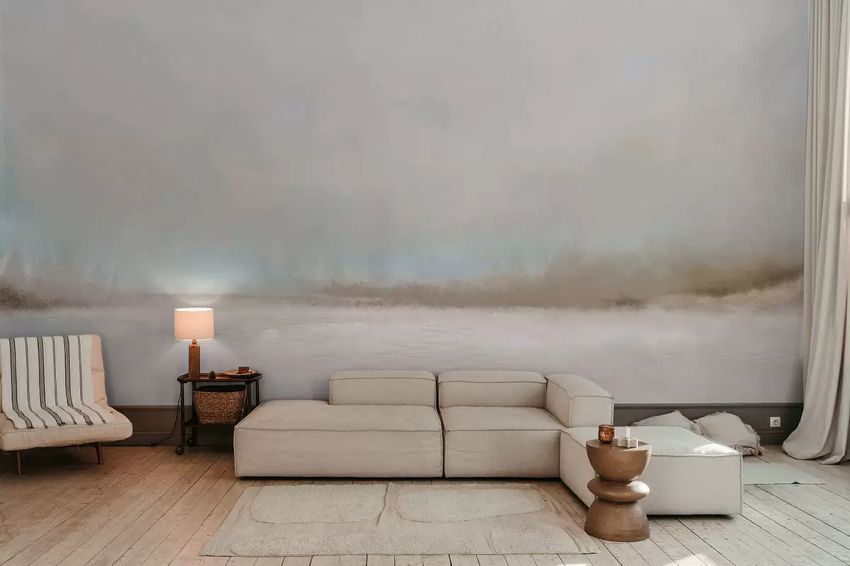 Peintures murales Paysage brumeux avec lac et forêt Nr. w05319
