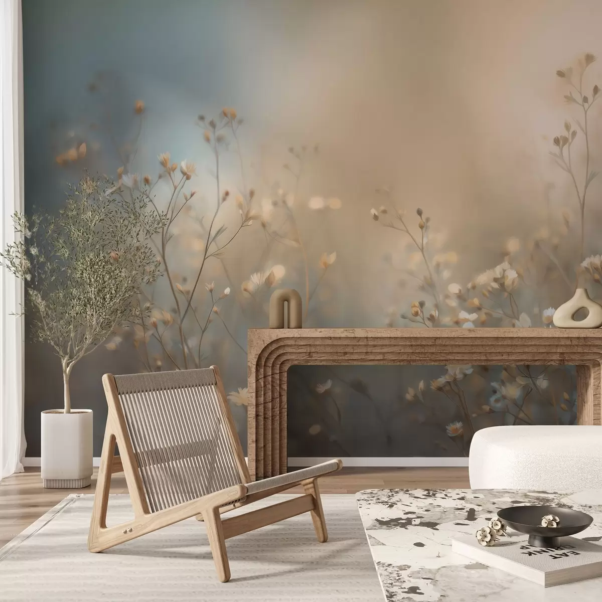 Peintures murales des herbes des champs aux petites fleurs, mises en valeur par une faible profondeur de champ Nr. w05386