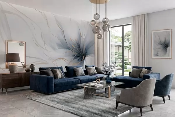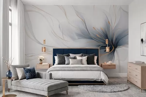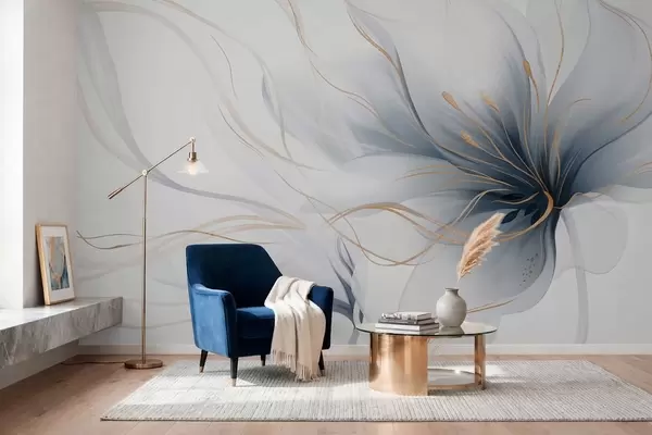 Peintures murales Une fleur bleue abstraite aux lignes fluides, dans le style Fluid Art Nr. w05428