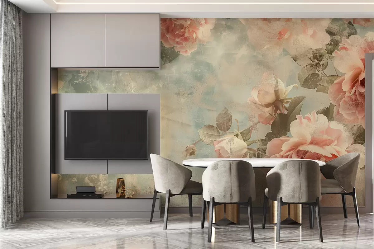 Peintures murales Fond fumé avec des fleurs délicates Nr. w07941