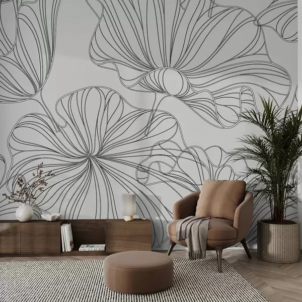 Peintures murales Grandes fleurs linéaires, fond beige pâle Nr. w07997v1