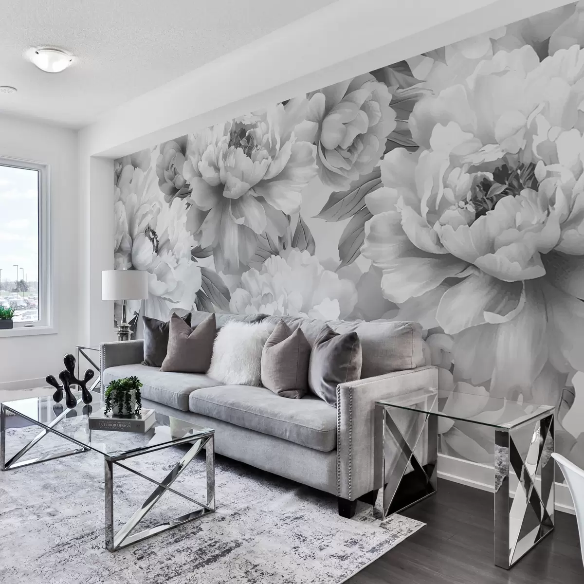 Peintures murales Pivoines noires et blanches Nr. w08068