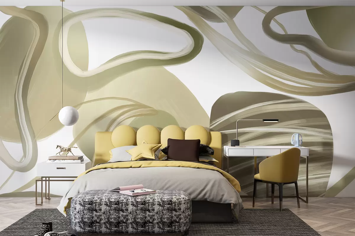 Peintures murales Formes abstraites tourbillonnantes et courbes dans des tons de beige créant une composition dynamique et fluide Nr. w08279
