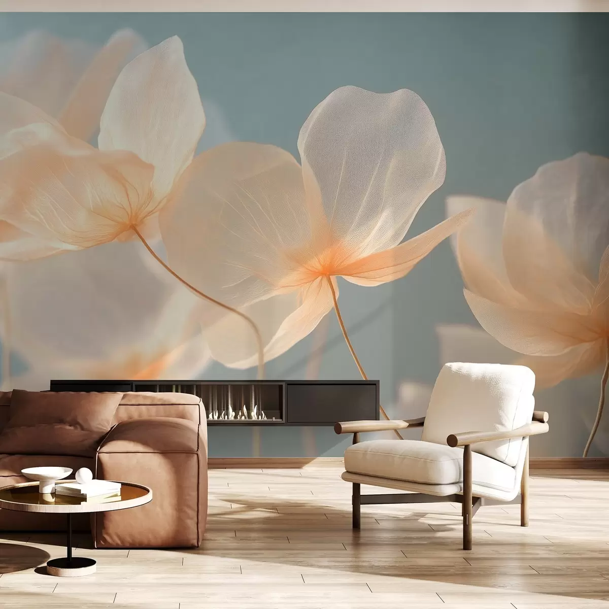 Peintures murales Pétales de lotus, une composition délicate sur fond bleu Nr. w08500