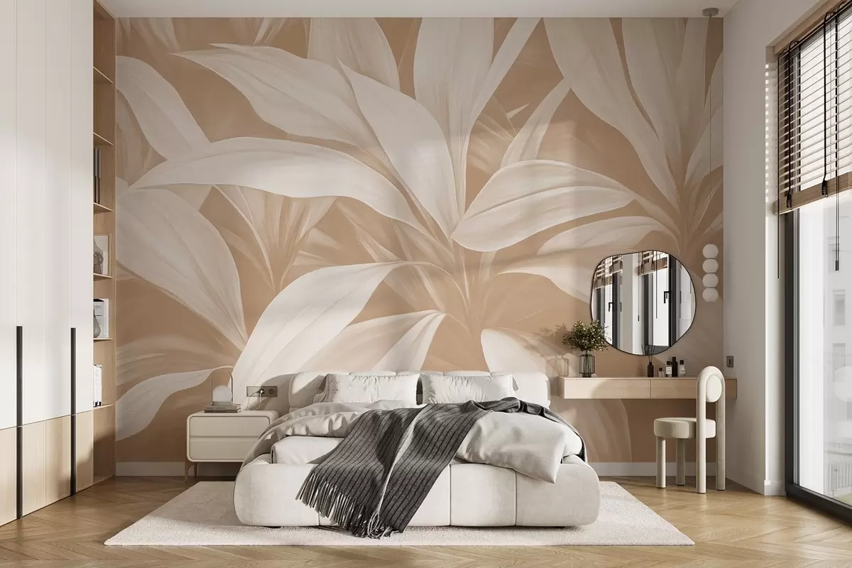 Peintures murales Grandes feuilles de la plante d'une couleur rose tendre Nr. w08501