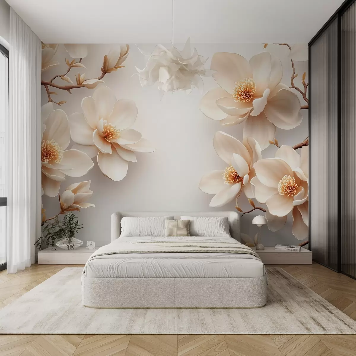 Peintures murales Magnifiques fleurs de magnolia de couleur crème sur fond blanc Nr. w08704