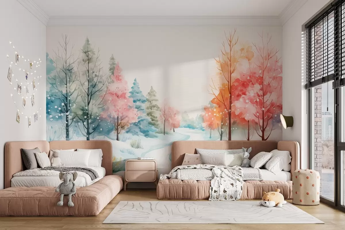 Peintures murales Une forêt d'hiver vibrante dans un style aquarelle Nr. w08856