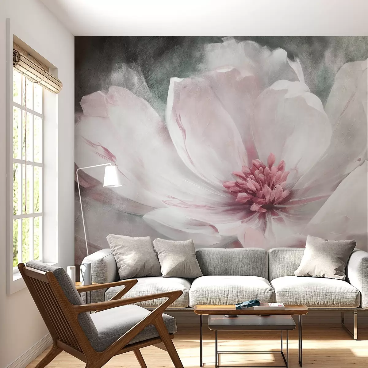 Peintures murales Grande fleur abstraite blanche avec rose Nr. w08864